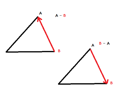 즉 벡터 A와 B가 있고 A-B일 때 B의 끝점에서 A의 끝점을 바라보는 방향을 얻을 수 있다.