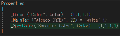Properties에 _SpecColor라는 예약어를 작성해주어야 하고 주의할 점은
