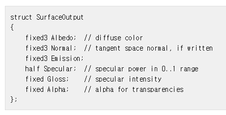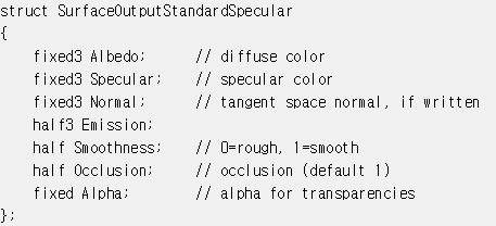 SurfaceOutputStandardSpecular를 넣어주면 된다.