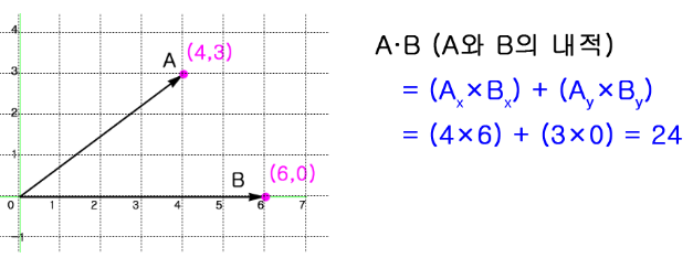 첫 번째로 좌표값의 각 성분을 곱해서 더하는 방법.