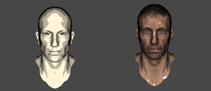 마치 음영이 부드럽게 딱딱 나눠진 것처럼 보인다.