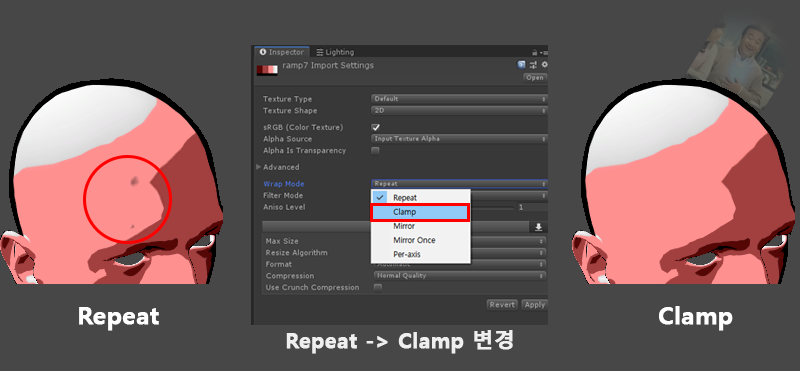 Ramp 텍스쳐를 보면 X축과 달리 Y축에는 색상이 바뀌는 게 없기 때문에
