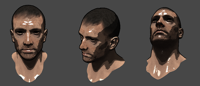 스펙큘러맵까지 이용하여 머리부분에는 스펙큘러가 적용안된것처럼 보이도록 하였다.