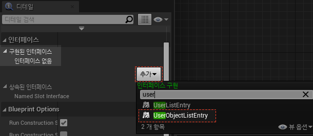 'UserObjectListEntry' 인터페이스를 추가한 다음 '이벤트 그래프'로 이동합니다.