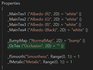 오클루전 맵 : https://docs.unity3d.com/kr/2017.4/Manual/StandardShaderMaterialParameterOcclusionMap.html